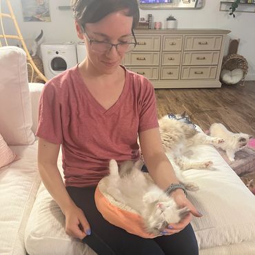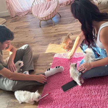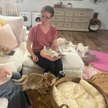 All cats and kittens you visit are already reserved and will usually be for sale during your visit. If you are interested in a kitten, I suggest that you email me so that way we can talk about available kittens and future litters that would match your family. This is best done over email as I may not always be available to chat for long. These cuddle sessions are hosted by myself, Jordan or one of my helpers.